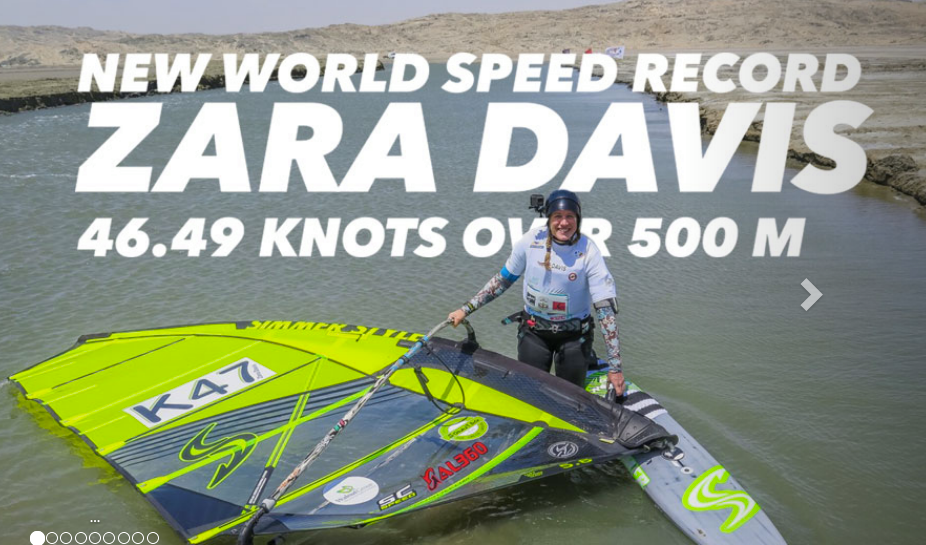 2017 Zara regains her 500m world record at 46.49 knots in Luderitz Namibia and wins ISWC speed world championships in Fuerteventura for the 3rd time.