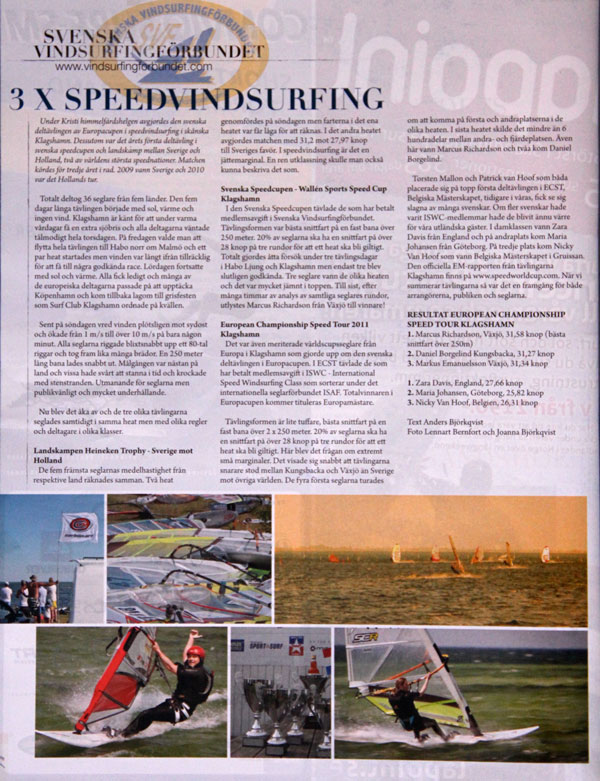 Zara in Sweden Windsurf Magazine after winning 2nd round of the Speed Tour 2011