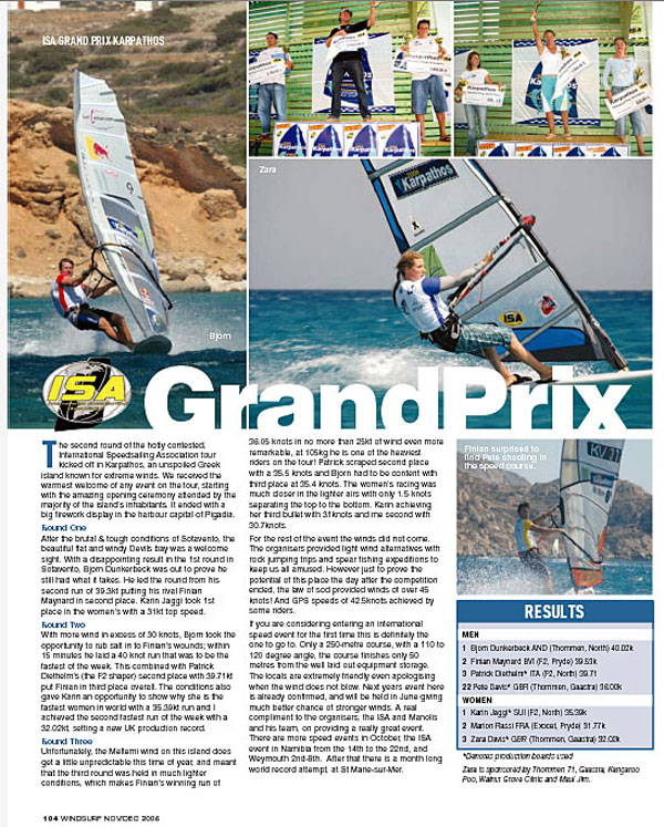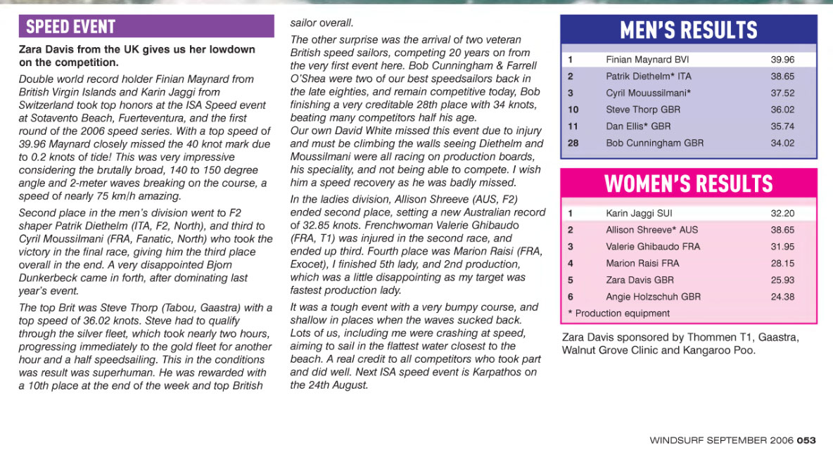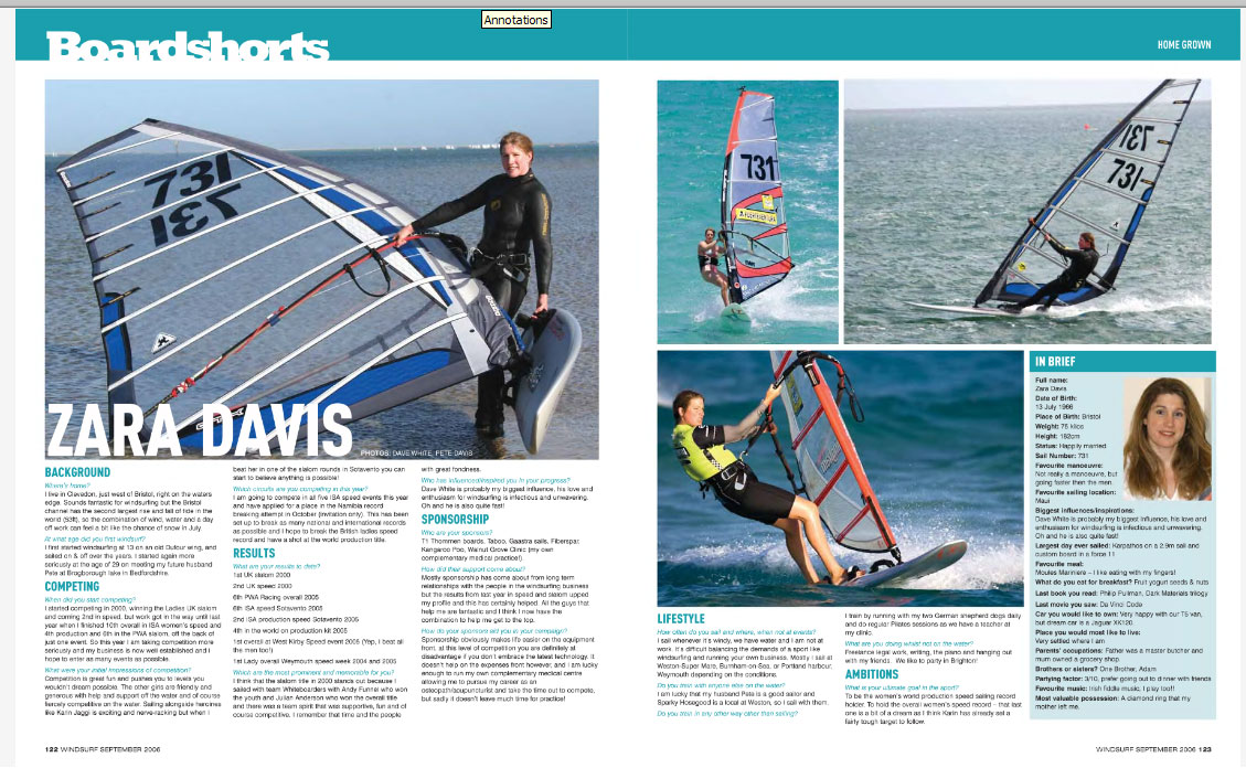 Zara in Windsurf Magazine interviewed by John Carter on her speed career.