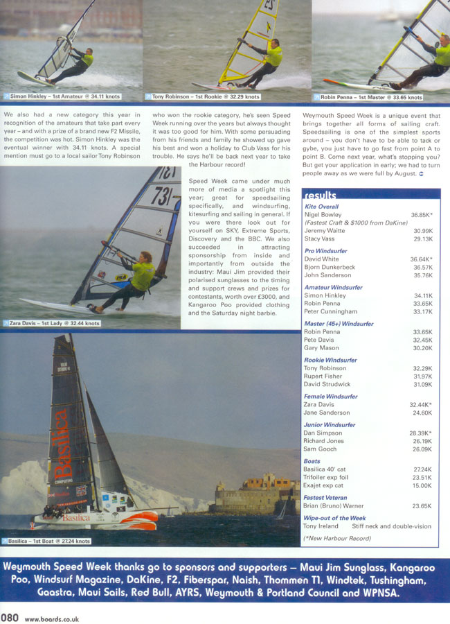 Zara in Windsurf Magazine on her 7th win at Weymouth speed week